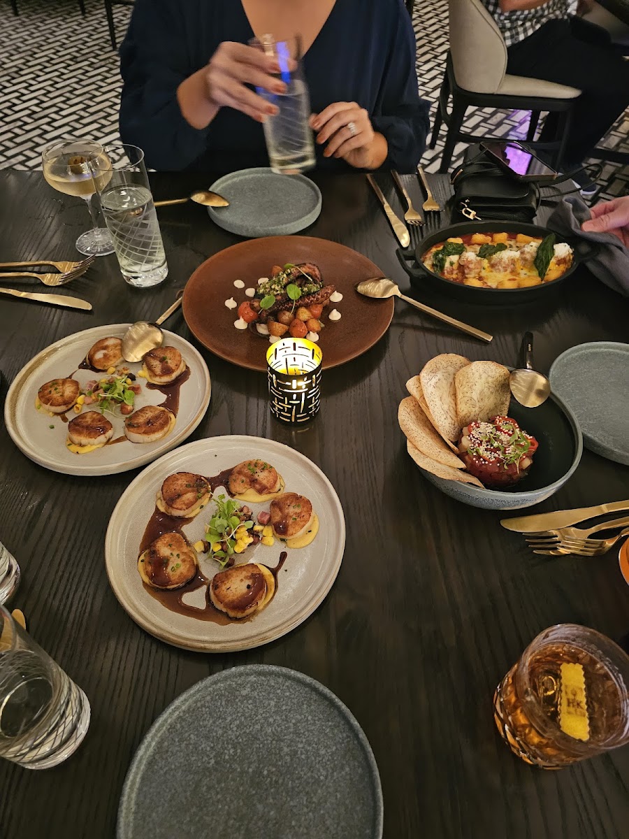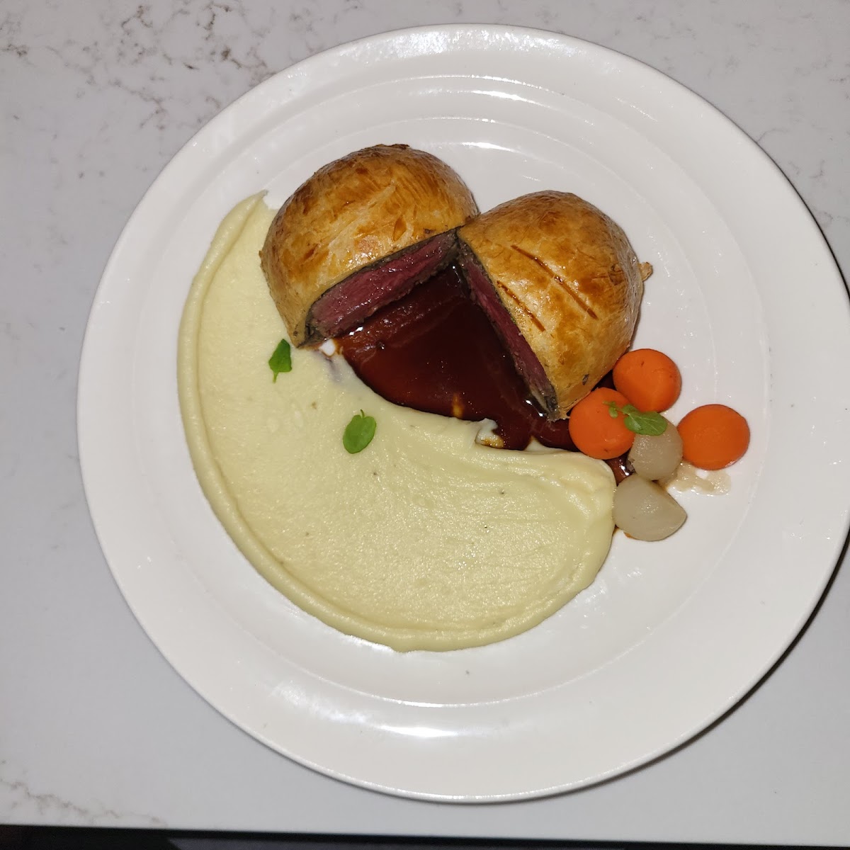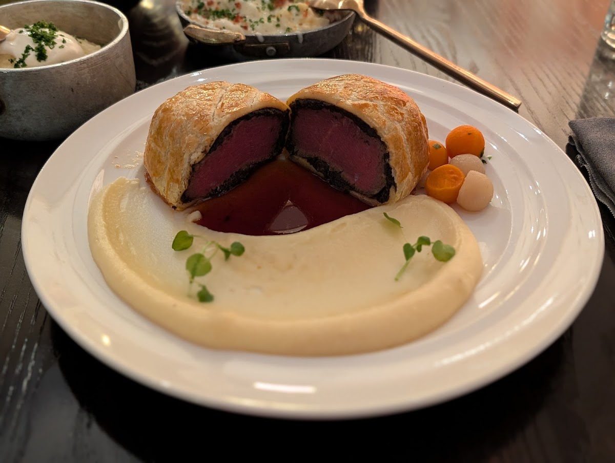 The menu leans heavily on refined comfort food with global technique. The Beef Wellington is the obvious headliner, and having watched the process firsthand from an open-view kitchen, it’s clear why consistency is the focus. Each Wellington is prepped hours in advance, temperature-checked, and finished to order, which explains the evenly pink center and crisp pastry. According to industry data from the National Restaurant Association, precision cooking like this reduces waste by up to 15 percent while improving guest satisfaction, something that clearly plays out here. Other standouts include the pan-seared scallops and the sticky toffee pudding, both executed with balance rather than excess.